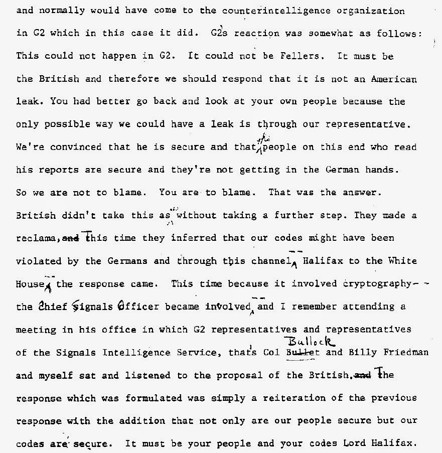 codes. In his NSA interviews the legendary codebreaker Frank Rowlett says about this affair ‘G2’s reaction was as follows: This could not happen in G2. It could not